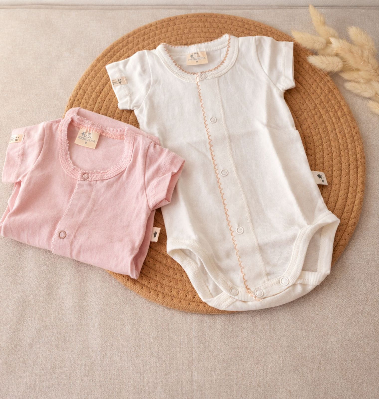 Con botones frontales y broches pañalero para facilitar el cambio.